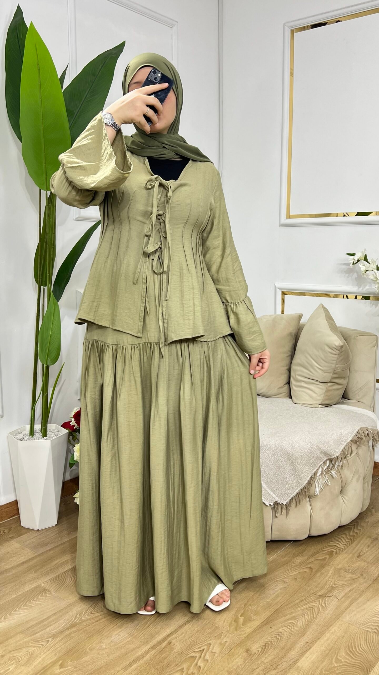 Ensemble Rytaa 🌟 (جيب + شيميزيي) بخامة راقية وألوان أنيقة 💚💙🤎، متوفر بالمقاسات 36 حتى 44، مع خدمة توصيل نحو 58 ولاية 🚚.